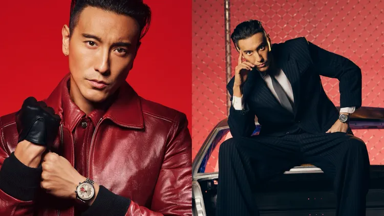 鏡頭前的王陽明,展現出駕馭不同風格的自在狀態。首先登場的亮紅皮衣造型,為新年注入鮮明能量,腕間搭配Carrera馬年限量計時腕錶,象徵好運啟程;隨後換上的黑色皮夾克,則以Monaco鏤空計時腕錶粉紅款作為亮點,方形錶殼結合大膽色彩,在沉穩基調中點出玩味態度。