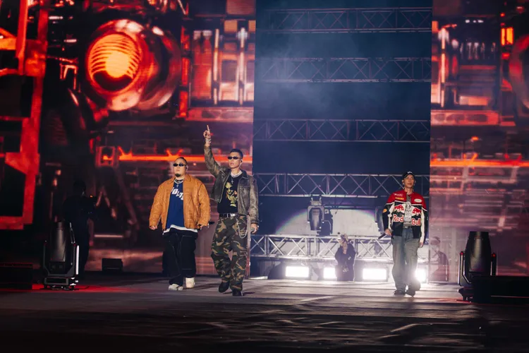 而後以《幹大事》、《OGS》、《MJ Fresh Gang》、《30 CM》、《Fly Out》等超high組曲,瞬間繞炸全場!在16°C寒風戶外開唱,頑童拱全場粉絲「站起來」,粉絲熱情揮舞手中「手槍造型」手燈,嗨跳取暖、熱力滿滿!