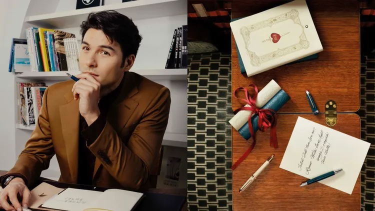 鳳小岳踏入這座時空走廊,在氤氳的墨香中感性書寫,最近剛接下英語學習平台代言的他,這回暫時不說英文,而是動筆「寫中文」,選擇了本系列中的羅密歐筆款,在紙上緩緩留下了「也許再執著一下,夢就成真了」這段話 。詮釋了羅密歐那份無所畏懼、跨越界線的激情與堅持。