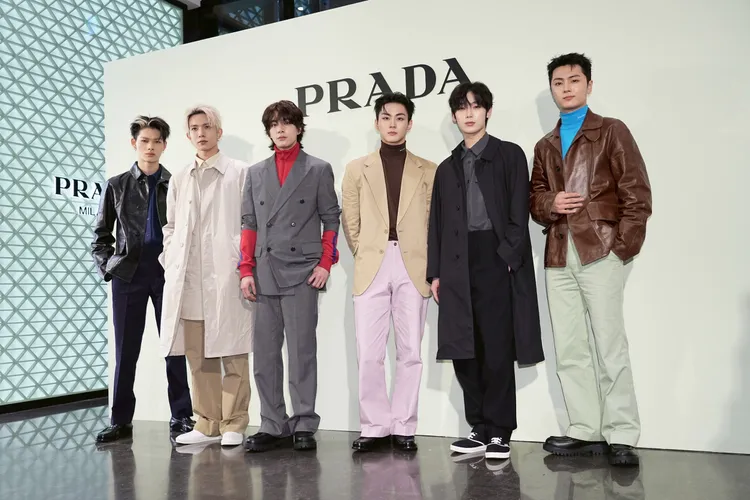成員善禹表示今日大衣是他非常喜歡的風格「感覺很適合我自己」;Jay開心稱褲子的顏色跟PRADA代表色一樣,「很喜歡這樣的安排」。禎元也認為自己的粉色褲子是亮點,並向粉絲喊話「謝謝大家來!我們都知道今天很多人來等我們很久」。