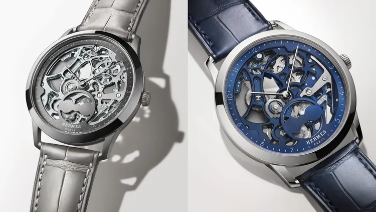 機芯的冷色調鍍層與錶盤色彩相得益彰,搭配霧面短吻鱷魚皮或細緻小牛皮錶帶,完美體現愛馬仕對於材質與色彩的卓越掌控力。