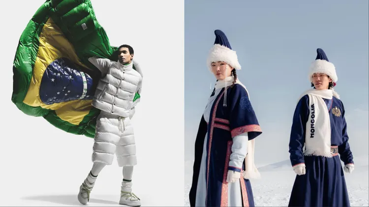 MONCLER此次攜手巴西創意設計師Oskar Metsavaht,共同為巴西隊量身打造開幕與閉幕盛裝。持旗手身穿的白斗篷以曾征服K2巔峰的傳奇Karakorum羽絨外套為藍本,保留原版的雙排鈕扣設計,內裡以精緻嵌花工藝隱藏巴西國旗細節,剪裁修長飄逸且充滿動態美感。其他成員的制服則以巴西國旗的綠、藍、白三色為基調,男性配搭短褲,女性則以半截裙造型登場,腳踩特別版雪靴,在嚴寒中展現來自南美的靈動生命力與機能奢華感。