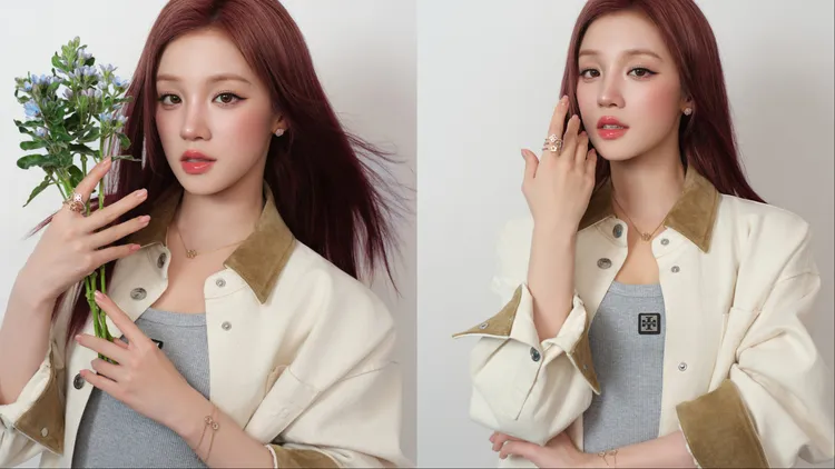 身為當前時尚圈最炙手可熱的面孔,宋雨琦此次將美式休閒穿搭與精緻珠寶完美融合,身著牛仔夾克與短裙內搭簡約棉質背心,看似率性的風格中,卻點綴了「勿忘我」花朵耳釘與密鑲項鍊,並透過疊戴組合戒指與六角手鍊,在指尖與手腕間增添靈動巧思。