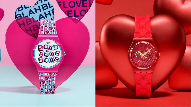 愛情的世界總是充滿驚喜、迷人與混亂,但有時卻也少不了那些讓人哭笑不得的「甜言蜜語」。SWATCH此次推出的特別錶款「LOVE & BLAH」,便是從愛情中那份不受控的俏皮感擷取靈感,選用粉紅色錶帶與錶殼帶來或活力視覺,錶盤設計則運用疊加文字與三重色彩展現玩味風格,乍看之下似乎略顯凌亂,其實面盤暗藏巧思。