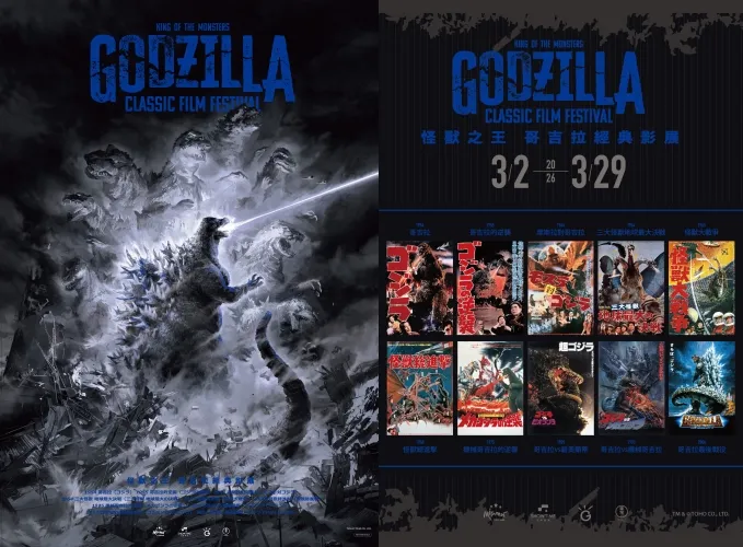 為回饋熱血怪獸迷,影展將於3月7日至8日、3月14日至15日連續兩週推出「哥吉拉馬拉松」活動。「馬拉松套票」將於今(23日)中午12點正式啟售,內容堪稱哥吉拉迷的超級大禮包,除完整收錄「影展台灣限定A2海報」、「影展限定 A3 海報收藏冊」與「影展限定資料夾」,更一次囊括10張影展電影特殊工藝海報,讓影迷真正實現從銀幕到周邊的「全制霸收集」。