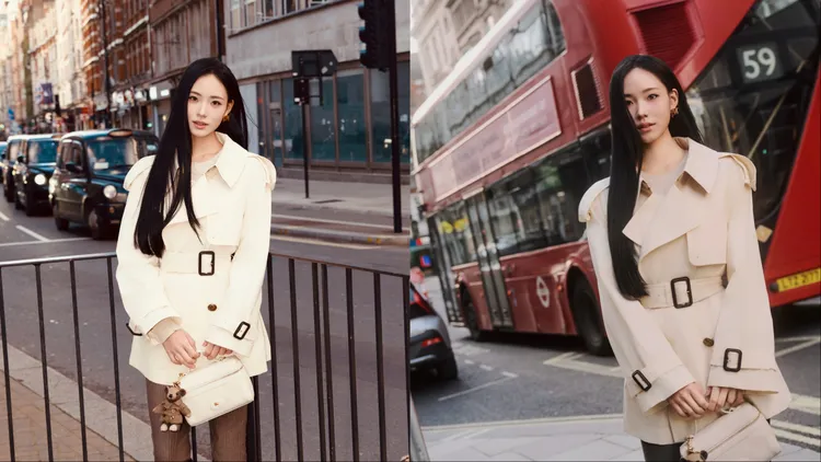 Burberry此番也集結多位巨星齊聚倫敦時裝周,包含品牌大使、泰星Bright Vachirawit、Stray Kids成員金昇玟(Seungmin)、中國演員陳坤,以及韓國凍齡女神潤娥。潤娥以一襲米色長版帆布Trerose風衣優雅啟程,內搭柔軟羊毛喀什米爾上衣與簡約牛仔褲,並透過戰馬騎士格紋圍巾的點綴,散發出知性摩登氣息。