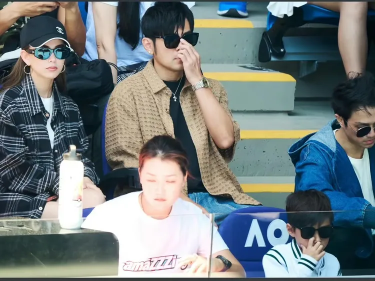 照片中,Romeo身穿白色運動休閒外套、戴著墨鏡坐在觀眾席,神情沉穩。臉型與下頜線條神似父親周杰倫,高挺鼻梁與隱約梨渦則被認為承襲昆凌的混血優勢,被形容是融合父母優點的「最強基因」。