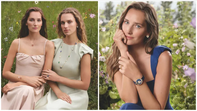 此次推出的五款新品包含長項鍊、手鍊、胸針、指間戒與耳環,每件都像是淬鍊自暖陽下的自然奇觀。工匠運用脫蠟鑄模與精工拋光,讓黃K金圓珠綻放出如沐春風的閃爍光芒。在素材挑選上更是精益求精,唯有色澤最勻稱的藍色與綠色瑪瑙,才能被鑲嵌成蝶翅與嫩葉,而白色珍珠母貝則在光影流轉間,折射出細緻柔和的虹彩,為作品捎來一抹典雅氣息 。