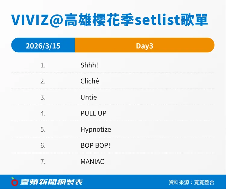 VIVIZ@高雄櫻花季setlist歌單