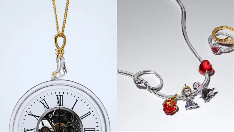全新Pandora x Disney聯名首推《仙履奇緣》的玻璃鞋吊飾,童話中的玻璃鞋由925銀與鍍14K金勾勒而成,透明感弧線與輕盈蝴蝶結交織,鞋尖處點綴的晶瑩水鑽更顯精緻;另也以鍍14K金、藍寶石交織成南瓜馬車造型戒指,定格神仙教母揮灑魔力的奇幻瞬間。此外,《睡美人》的皇冠輪廓化為戒指線條,搭配小粉鑽閃耀出柔和色澤;《青蛙與王子》則推出睡蓮造型吊飾,仔細一看,還有螢火蟲停駐其間,象徵著童話黑夜裡微小卻堅定的光。