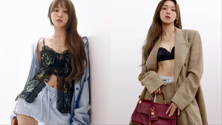 身高175公分的李聖經,擁有112 公分逆天大長腿,絕佳身材比例也被封為「長腿妖精」,駕馭起各種風格都游刃有餘。在此次大片中,她先是以刺繡透膚睡衣搭配條紋短褲亮相,輕盈薄紗質地讓零贅肉腰線若隱若現,展現不經意的誘人氣息;她另也換上1襲全透視連身褲裝,大方曬出內裡的黑色內衣褲;性感造型還沒結束,只見她又穿著俐落卡其色西裝,內層捨棄襯衫,僅單穿黑色蕾絲內衣,又辣又颯的魅力讓人看了目不轉睛。