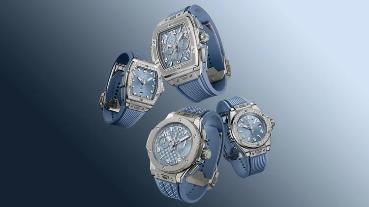 女性錶款則擁抱90年代「低調奢華」的精神,透過33mm Big Bang One Click與32mm Spirit of Big Bang精鋼鑽錶,展現柔美與動感並蓄的特質。淡藍調的精鋼錶殼搭配太陽紋面盤,在36至44顆美鑽的點綴下熠熠生輝,讓都會女性不論在辦公室或晚宴場合,都能散發自信優雅的氣場。