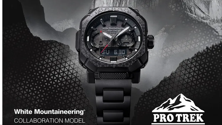 外觀細節上,聯名錶款PRW-B1000WM-1以White Mountaineering最具代表性的霧面黑為主調,錶盤運用磷光白時標、指針,與亮眼紅色秒針營造對比,同時提升讀時清晰度。White Mountaineering標誌性的幾何三角形圖騰,則透過半透明印刷技術,由錶盤一路伸至不鏽鋼金屬錶圈,低調展現辨別度。材質選用同樣考量戶外使用需求,H型輕量鈦金屬錶帶確保長時間配戴的舒適與耐用性,而錶殼則採用耐燃生質樹脂讓探險者能安心用火。