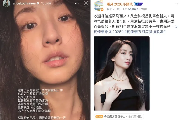 關於參與《乘風2026》,柯佳嬿的經紀團隊直接否認,柯佳嬿的大陸後援會,都在微博幫忙澄清這項傳聞,表示此為假消息,柯佳嬿正在準備新電影。今本人也親自曬出美美的自拍照,分享近日正在享受小假期,接著要進組拍戲了。