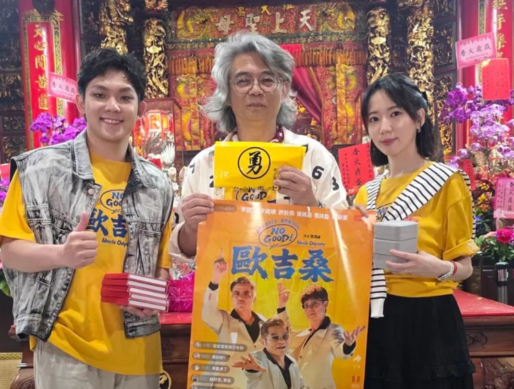 苗栗通霄鎮白沙屯拱天宮媽祖徒步進香活動是每年台灣一大盛事,今年「粉紅超跑」擇定4月12日起駕出發,目前報名人數已突破40萬,這幾天現場人潮非常多,導演張清峰帶著演員林毓家、方甯穿著EDWIN × 白沙屯媽祖聯名系列《NO GOOD!歐吉桑》電影T恤,發送結緣酷卡給現場民眾。