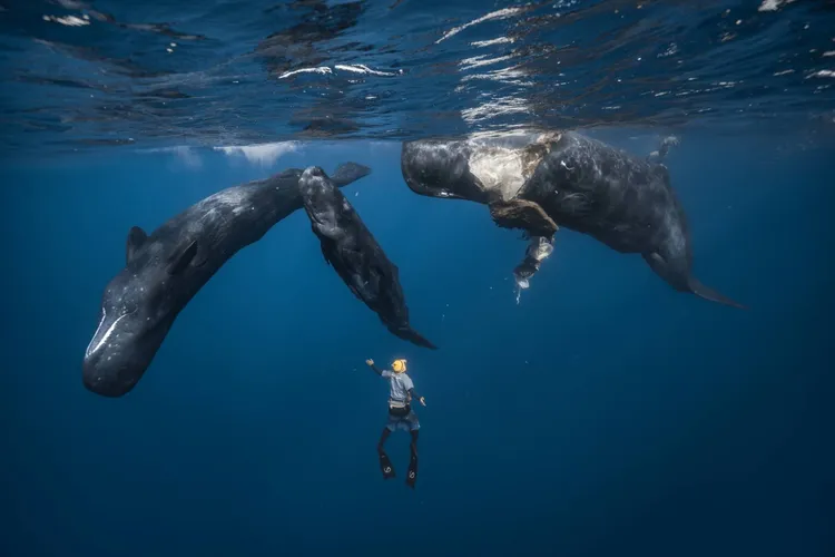 在他曝光的影片中,甚至能清楚看見分娩瞬間伴隨的胎盤組織與新生幼鯨初見世界的模樣,堪稱全球極其罕見的影像紀錄,香鯨的分娩過程展現了高度的社會化與集體溫情。當母鯨臨盆時,群體中的其他雌鯨會主動圍繞在「產婦」身旁組成「接生大隊」。