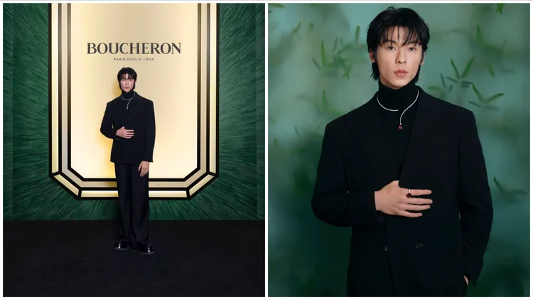許光漢身上這件源自1879年的經典設計,線條自由流動,帶著一點叛逆與幽默感,將男性佩戴高級珠寶的風格詮釋得剛剛好。而同場的品牌代言人周冬雨則演繹了高級珠寶系列Lierre de Paris問號項鍊、耳環及26 Vendôme戒指。