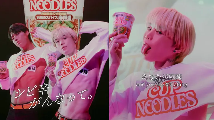 演出該爭議廣告的是曾為「Snow Man」 、「嵐」等人氣團體寫歌的「WHITE JAM」成員SHIROSE,以及健美男星榎田一王,廣告歌則是改編自SHIROSE的夯曲《磁石》(Magnet),搖臀伸舌等挑逗動作也是SHIROSE演唱該曲時的橋段,他發文表示:「我演出了CUP NOODLE史上布料最少的廣告,而且完整還原我的《磁石》LIVE影像,大家一定要嘗嘗!」粉絲也開心留言恭喜他,只是仍有網友直言「不舒服」。