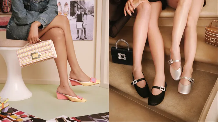 本季設計核心將品牌精神「生活之樂」(Joie de Vivre)化作感官體驗,透過高科技面料的虹彩光澤與中性色彩的對話,勾勒出輕盈春日輪廓。首要重點就是擁有60年歷史的Belle Vivier系列,品牌將時光溯回至誕生之初的1960年代,繽紛的撞色漆皮款式成為亮點,傳遞出活潑夏季氛圍;涼鞋款式則以6公分楔形鞋跟搭配方頭輪廓,完美修飾女性腿部線條。本季也致敬手工刺繡工藝,藉由緞面與蕾絲在鞋身交織出立體浮雕般視覺。