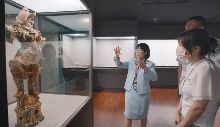 故宮文物能歷經千年流傳至今,背後仰賴的是細膩而繁複的修復工藝。圖書文獻修復師高宜君分享,修復工作不只是技術,更是一場與前人對話的過程,而在展場第一線,與觀眾最直接互動的,則是一群被譽為「志工界天花板」的導覽志工,服務超過35年的資深導覽志工王雪吟笑稱自己是「白髮宮女」。