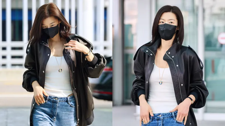 全智賢腕間配戴SIXTIE系列玫瑰金腕錶,最迷人之處在於那獨特的梯形輪廓,設計靈感汲取自1960年代的華麗美學,復古感十足,搭上今年全新深藍色鱷魚皮錶帶,為皮衣造型注入了一絲現代柔美氣息。
