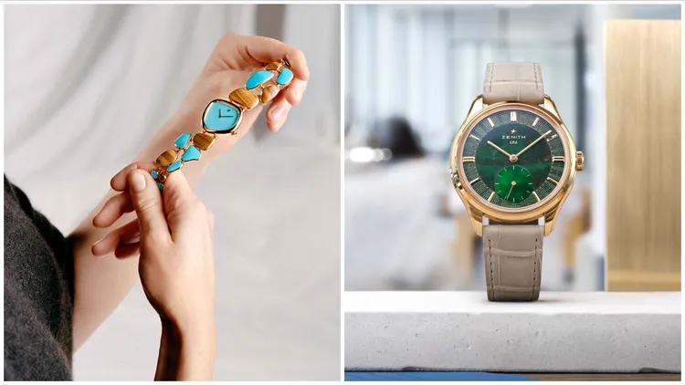 ZENITH備受矚目的焦點,是延續品牌創辦人精神的G.F.J.腕錶,此系列曾以傲視錶壇的135型機芯榮獲日內瓦鐘錶大賞精密時計獎,如今以18K黃金材質溫潤回歸。錶盤中央選用自帶深厚底蘊的「血石」材質,其天然紋理使每一枚腕錶都獨一無二,並與外圈象徵力洛克錶廠外牆的「磚形」雕花交相輝映。