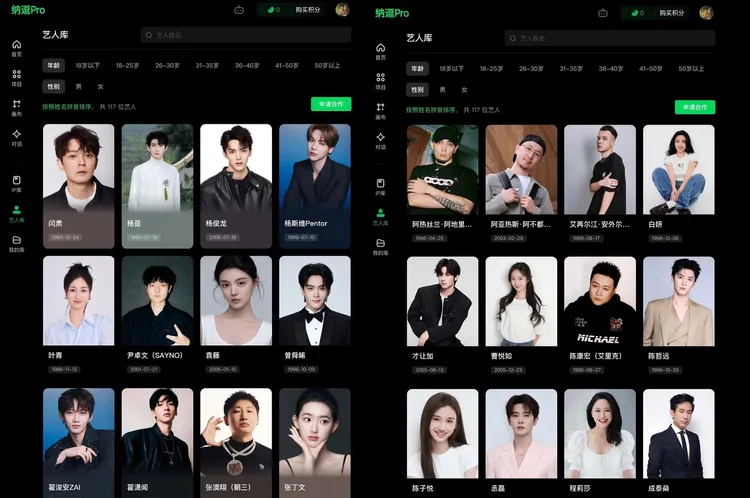 愛奇藝CEO龔宇說明:「我們努力地降低因為AI製作可能產生的各種各樣的障礙。比如說演員授權,我們現在的愛奇藝納逗Pro上,有一些演員的清單。只說他同意,可以去做AI創作的授權意願。他只是表達了意願要談。我們制定的規則,跟現在實拍一樣,一個演員願不願意參加你這個項目、演哪個角色,都要他同意的。而且中間的這個人就是他的經紀人、經紀公司,跟現在的商業模式沒有任何變化。」