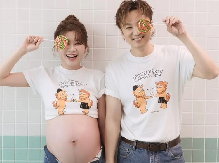 不過第一次當媽,她仍感到幸福,最注重儀式感的謝京穎不免俗拉著老公張書偉,拍了孕婦寫真,挺出巨肚的她笑容滿滿。