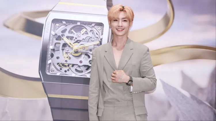 炎亞綸今日的造型充滿巧思,左手手背特別黏貼「RADO」字樣的水鑽貼紙,在鎂光燈下閃耀奪目。而整體造型的焦點,無疑是手腕上配戴的Anatom系列新作,該系列自1983年誕生以來,便以雕塑般的流暢外型、服貼的佩戴感受到錶迷青睞。本次推出的電漿高科技陶瓷鏤空版本,延續了經典曲線輪廓,並透過鏤空結構創造出視覺上的留白,引導配戴者直視內部機芯的精密運作,將機械律動之美轉化為現代感的腕間藝術。