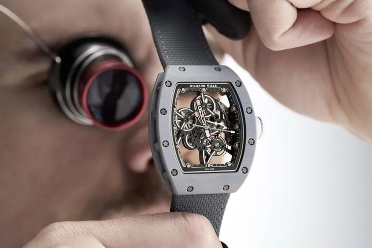 這款腕錶的心臟跳動著僅重5克以下的RMUL4手動上鍊機芯,將品牌標誌性的鏤空工藝推向新層次,少了自動盤的視覺遮擋,光線得以在機芯孔隙間自由流轉,映照出五級鈦合金底板與橋板的精密美感。為了確保結構穩定,機芯採用雙發條盒系統,搭配轉速更快的運作機制,使動力傳遞在約55小時的續航期間始終保持均衡平順。