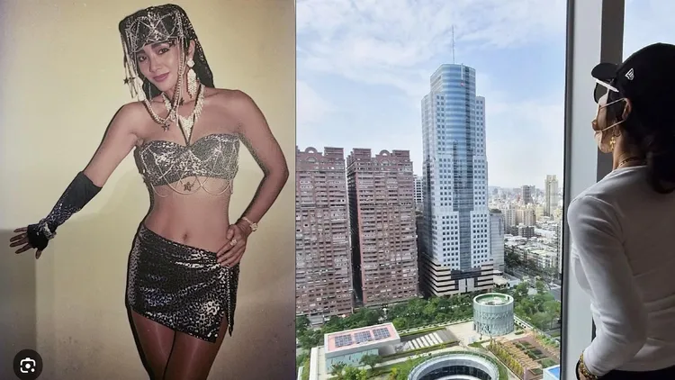 她今表示,朋友提醒她,多年前她在高雄85大樓旁那棟紅色大廈買了1~2樓店面,還有頂樓的住家,她說她當然記得,只是不清楚年份,「店面租出去一段時間,後來碰到房客常拖欠房租,想請他搬走,他又拖著不搬,請友人協助才順利把房子處理好,接著把房子賣了」,照片中的她在承億酒店房間內,遠眺對面的大樓。