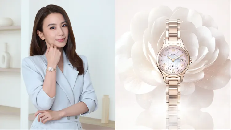 CITIZEN此次邀請女錶代言人田馥甄拍攝最新形象照,一襲柔和灰藍色套裝襯托出手上的ES9498-69N限量光動能全球電波錶。該腕錶為本次的主打款式、台灣限量100只,面盤選用漸層感的粉蝶貝為底,中央綻放山茶花瓣特別以「光粒」效果勾勒輪廓,低調營造出華麗視覺效果。錶圈周圍穿插玫瑰金羅馬時標與5顆閃耀的實驗室鑽石,整體氛圍更顯時尚摩登。