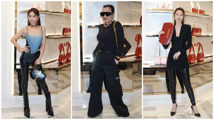 Ella的丹寧馬甲與乳膠緊身褲的搭配造型也有看頭,完全勾勒她纖瘦身材,還忍不住直誇自己「好美、好正」,「這件褲子很厲害,讓我捨不得脫下來,也是我第一次穿馬甲出席活動」,整體裝扮讓她超滿意,笑說:「希望老公看到我這麼美,直接撲上來。」曾莞婷和關穎也是以乳膠褲搭配現身,分別以全身黑色與不同色調的紅色造型亮相,風格都搶眼。