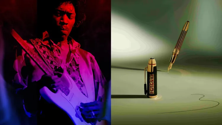 全新推出的著名人物系列致敬Jimi Hendrix書寫工具,引入Hendrix所愛的吉他和其具代表性的專輯、演出等主題元素為設計,像是特別款書寫工具,整體即以Hendrix珍視的乳白色Fender Stratocaster芬達吉他為靈感,筆夾形狀則仿照他用以創作獨特音效的顫音棒。黑色珍貴樹脂筆身表面的幾何結構,仿照用於控制電吉他音色的哇音踏板,Hendrix亦是首位使用此種電子音效設備的樂手,筆尾末端的紅色珍貴樹脂鑲飾,更進一步令人聯想起Hendrix喜愛使用的馬歇爾擴大音箱指示燈。