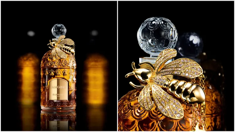 為聖誕節慶推出的精鐫鎏金蜂印瓶設計,是嬌蘭與法國巴黎珠寶工作室L’Atelier Truscelli合作,由珠寶藝術家Francesco Truscelli創作出華麗的蜜蜂造型鍍金珠寶裝飾,再於其上鑲嵌超過150顆水晶以及星星。蜜蜂珠寶的製作過程需經過複雜脫蠟過程,再經多次拋光與打磨,才能鑲嵌上水晶,可說相當精緻費工。
