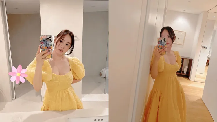 其中一張對鏡自拍的照片,閔孝琳身穿丹麥設計師品牌CECILIE BAHNSEN的鵝黃色公主袖洋裝,相當甜美浪漫,其在電商網站FARFETCH的售價,約8萬1000元台幣,而胸口的低胸方領剪裁,也讓她難得在IG公開展現好身材,無疑是辣媽一枚。