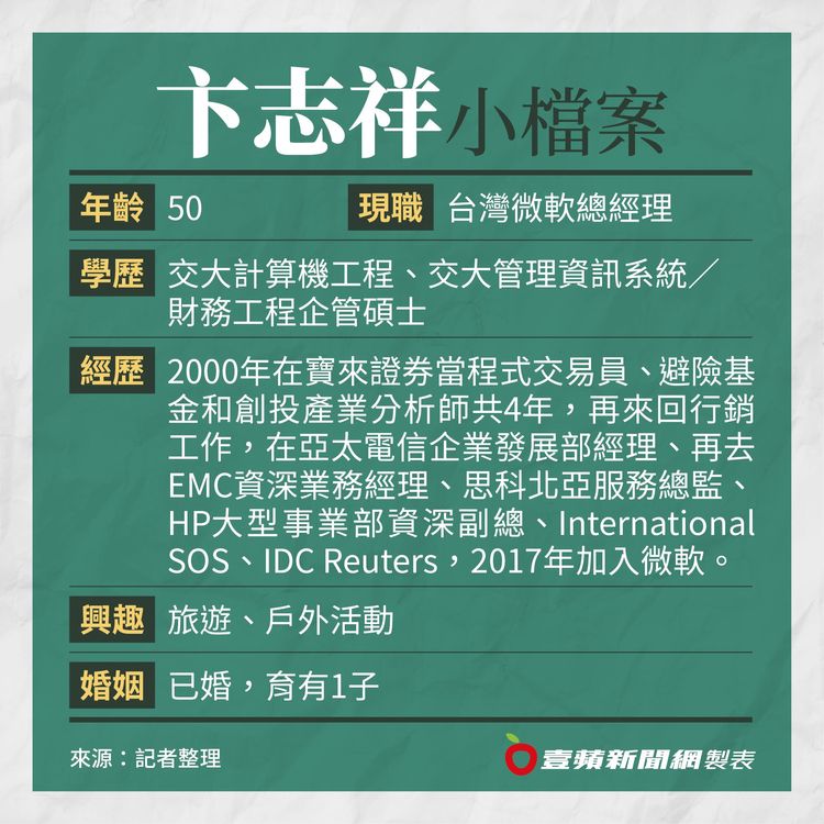 台灣微軟在今年6月宣布由卞志祥接新任總經理,卞志祥是台灣微軟15年來由內部升任的總經理,格外受到市場注目。