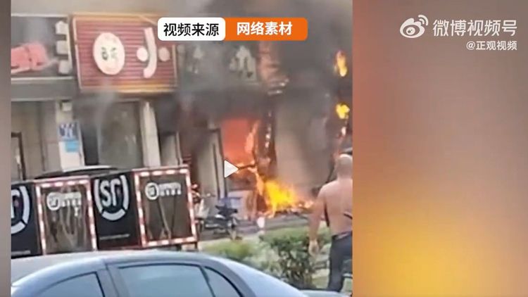 根據社群平台微博相關影片顯示,餐館門口火光熊熊,濃煙沖天,火勢頗為猛烈。