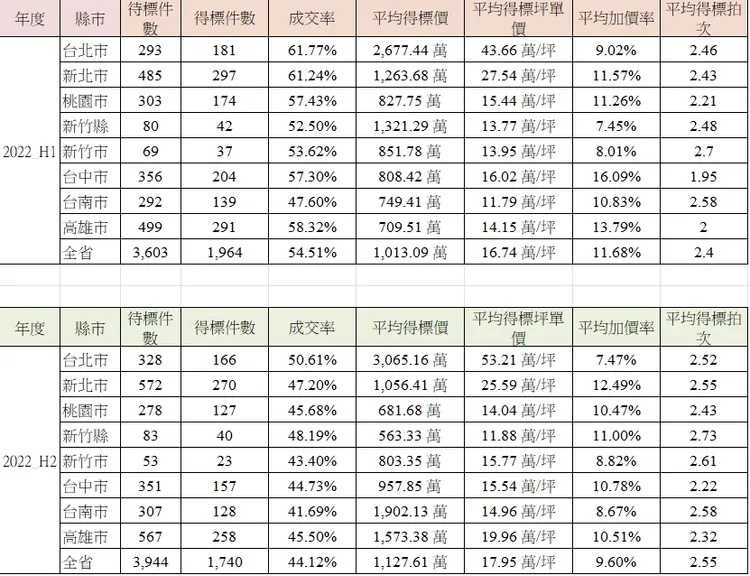2022年上半年及下半年相比起來,全台房市買氣猶如「天堂與地獄」,從全年度法拍統計數據也可窺見一二。