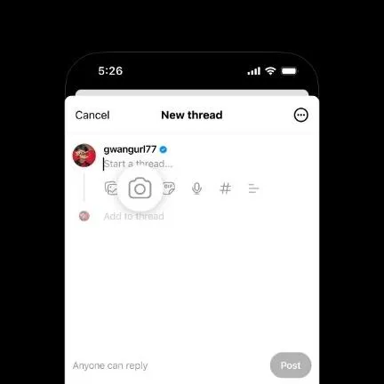 另一個新功能則是過去在 Threads 加上照片只能選擇相簿中既有的照片,現在則是新增按鈕,讓使用者能在進入新串文發佈頁面中,點擊相機圖案後直接拍照放入文內,不管是文字或影像,都能在 Threads 上即時記錄。