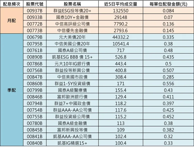 財富管理專家表示,隨著市場期待後續降息,加上債券ETF在收益分配上亦屬穩定,故自去年下半年起,吸引投資人搶進卡位,以期掌握未來降息帶來的資本利得空間,也順勢建立穩健收益來源,再者,隨月配型債券ETF檔數增加,也提供投資人讓資金運用更為靈活的管道,其中又以00937B群益ESG投等債20+人氣最旺,無論是規模或受益人數的增長狀況,今年來都居所有債券ETF之冠,加上其上市以來配息金額穩定,連續四次的金額都一樣為0.084元,市場交投也相當熱絡,近5日平均成交量近13.25萬張,高居債券ETF之冠。