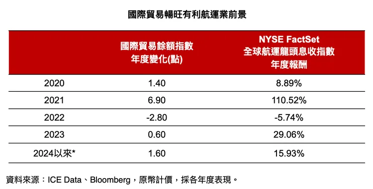預計9月20日正式掛牌的全台首檔航運ETF「00960野村全球航運龍頭息收ETF」其追蹤指數「NYSE FactSet全球航運龍頭息收指數」,即納入全球三大航運種類的龍頭企業,不但在近期震盪盤勢表現相對台股加權與電子指數、費半與美股科技巨頭,乃至於日股等都較為抗跌領漲,中長期來看也各有不同投資利基,值得納入投資組合。3