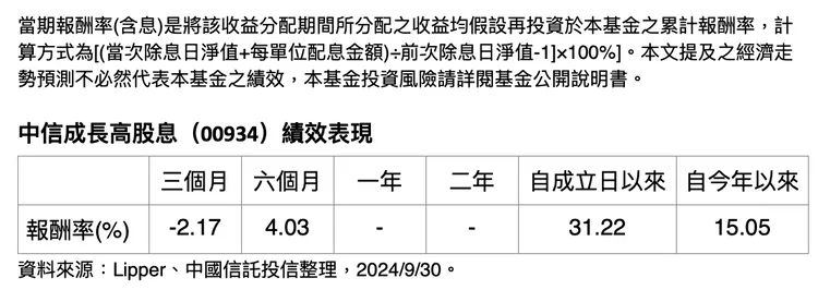 根據集保統計至9月27日,台股ETF受益人數已達980.4萬人,其中00934自2023年11月1日掛牌至9月30日,受益人數從一路從掛牌時的2萬9555人攀升至13萬3,676人;今年以來受益人數成長114%,規模亦從55億元攀高至313.4億元,足顯其受投資人青睞。