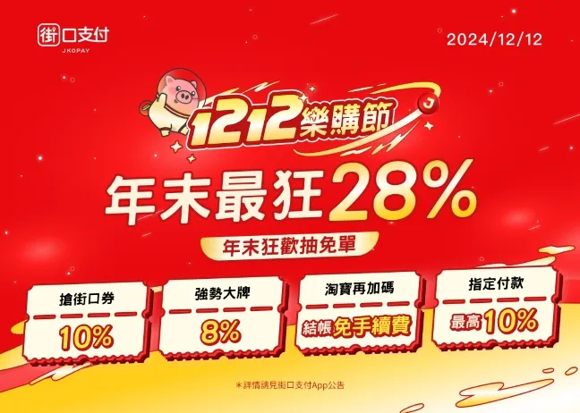 街口支付雙 12 樂購節活動期間,提供多項指定支付工具的加碼優惠,包括:綁定台新 @GoGo 卡可享最高 3% 台新 Point 回饋;綁定樂天國際銀行帳戶或合作金庫銀行信用卡則能享 10% 街口幣回饋;使用王道銀行簽帳金融卡,每筆消費還能享 3% 現金回饋。透過多層次的優惠,讓消費者充分感受電支支付的高效與實惠。