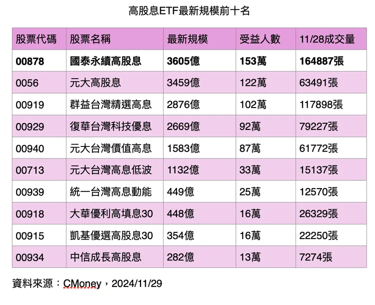 00878成交量持續奪高股息ETF之冠,28日更衝上16萬張,最新規模超過3605億,受益人數逾153萬人,穩坐定期定額、受益人數、高股息規模三冠王。