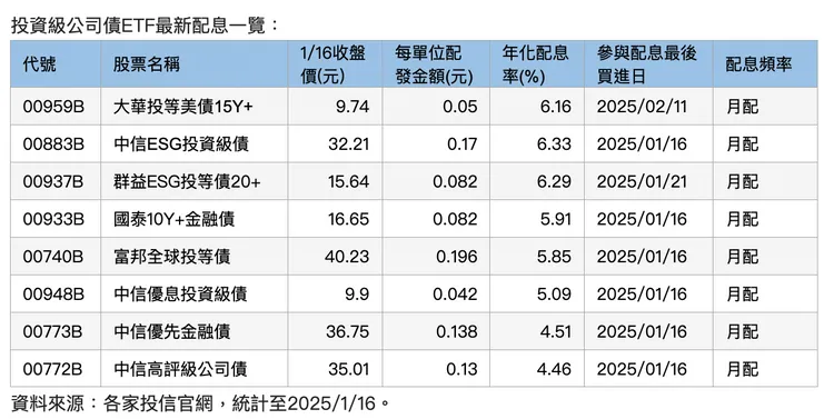 根據1/16最新評價結果,在2/12日前持有00959B的投資人,每單位將配發0.05元。換句話說,想參與配息的您,農曆年後的2/11為最後買進日,配息發放日將在3/7,不妨為年終獎金做好規劃,讓每個月底都有一筆息收。
