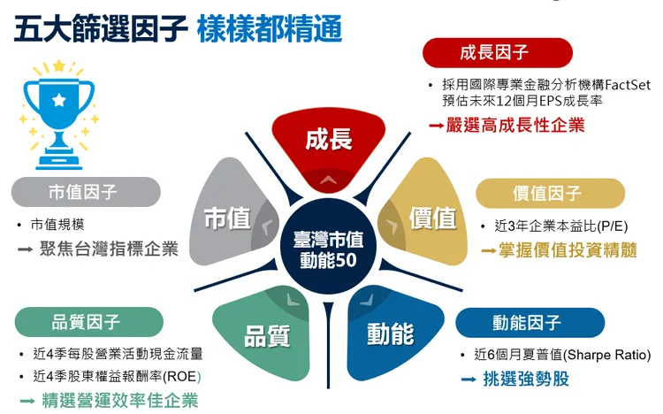 保德信投資長李孟霞指出,市值型ETF歷經進化,早期以市值排序、貼近指數為目標,缺乏額外篩選機制,主要著重穩定性與成長性。近年來,市值型ETF加入主題性投資概念,如ESG、低碳轉型等,並引入創新選股因子,如市值成長篩選、個股品質評量等,進一步提升成長潛力與競爭力。此外,新一代ETF採收益平準金機制,有助於穩定配息。