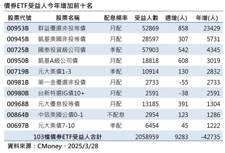 群益投信債券ETF研究團隊表示,債券ETF產品更趨多元,流動性也越來越好,並大多具有穩定配息機制,投資人不但可以此建立穩健收益部位,亦有望掌握後續資本利得契機。後市來看,在殖利率仍具吸引力下,穩健資金仍有望持續流入債市,而市場也偏好鎖高利率的券種,當中又以BB-B級、鎖定票面利率6%以上的成份券、選債機制納入信用因子加權之非投等債ETF最值留意,投資人可把握相關債券ETF投資契機。