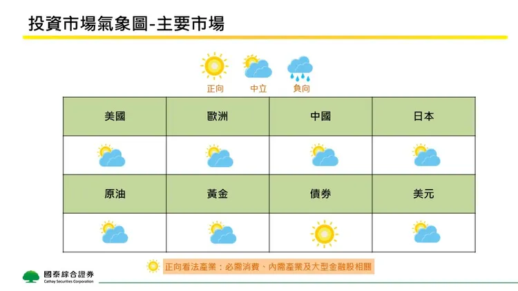 展望後市,國泰證券建議投資人持續關注聯準會貨幣政策節奏、美國經濟體質與企業盈餘表現,採取靈活且分散的資產配置策略,以因應多變的全球市場環境。國泰證券強調,以長期面來看,投資人應著眼於基本面,選擇具穩健盈利能力且具競爭優勢的企業,並注重資產配置的多元化與風險管理,以達到資本增值的目標。