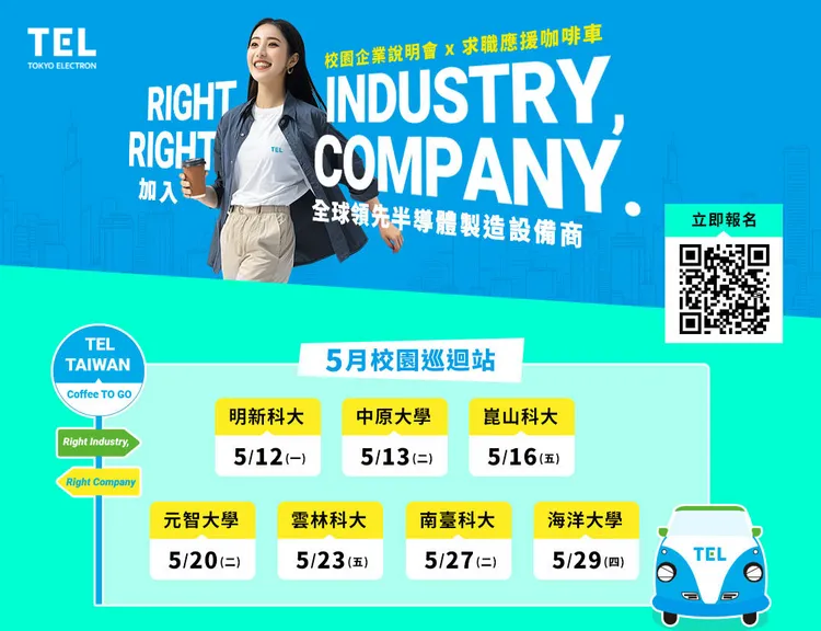 看好半導體與AI應用在未來的龐大需求,TEL持續在台深耕,派出多位技術主管與工程師參加企業說明會,並分享公司優勢以及各項育才留才福利。在育才上,公司除了每年籌辦豐富多樣的在職培訓課程,更提供海外進修與派駐機會,提升同仁國際視野。在留才上,公司以完善的福利制度吸引優秀人才,包括免費員工餐、飯店式管理宿舍、日本研修度假中心、彈性津貼、久任員工假、以及豐富的海內外旅遊與尾牙活動,全方位照顧員工。